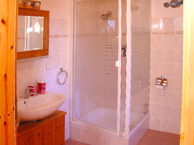 Das gemütiche Bad verfügt über eine große Dusche und lädt zum Verweilen ein.