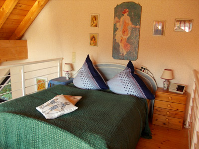 Zwei Schlafplätze befinden sich parterre und zwei auf der über eine Treppe erreichbaren Galerie.
