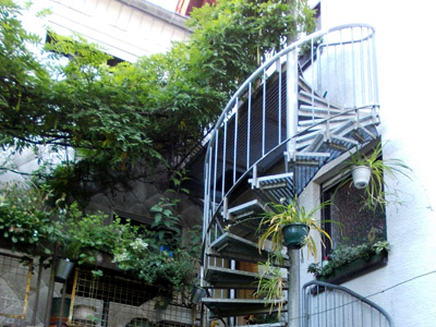 Der Zugang führt durch die Garage über eine steile Wendeltreppe in das Dachstudio.